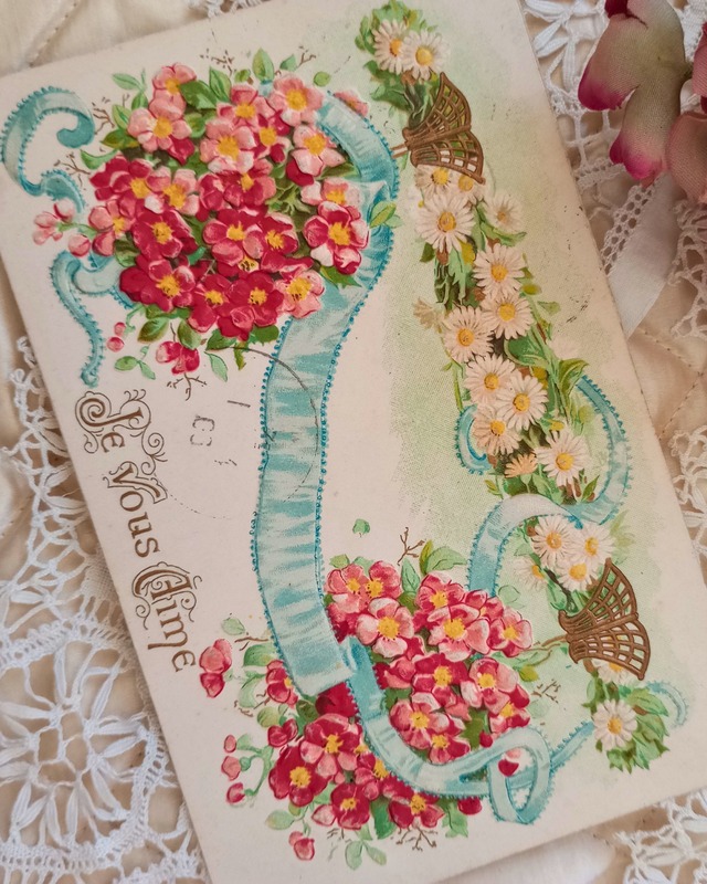 アンティークポストカード ローズ&マーガレット エンボス