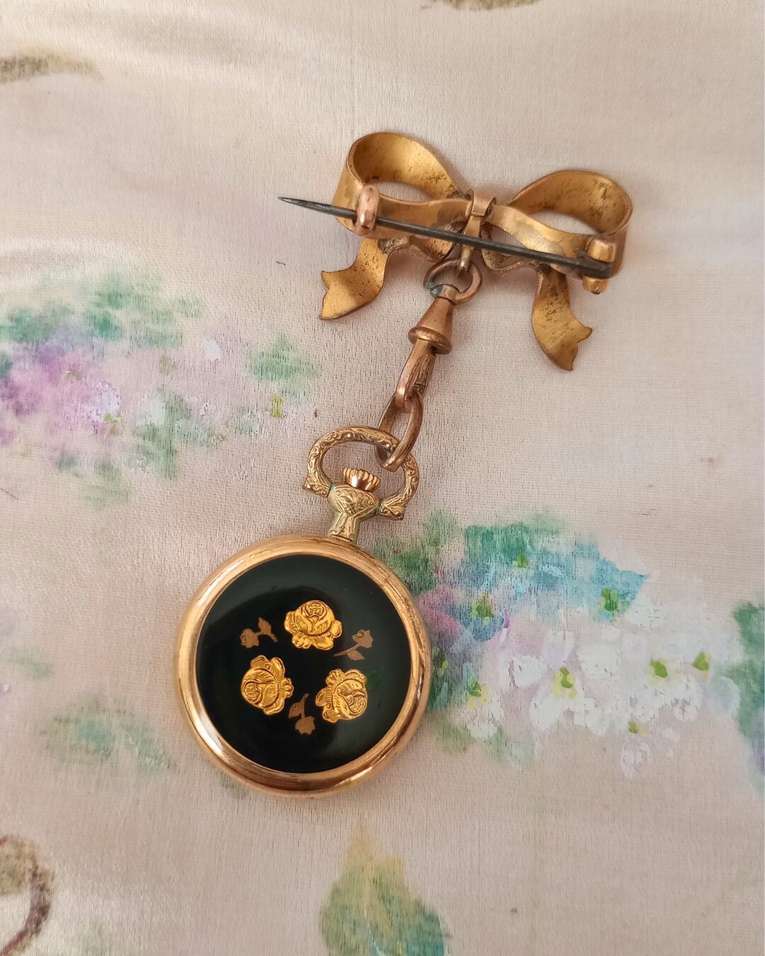 アンティークブローチ リボン&時計