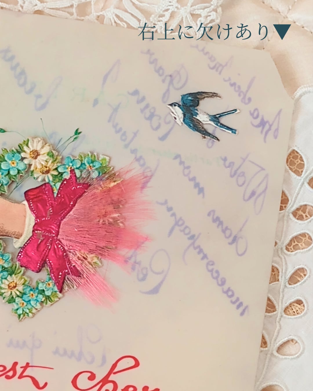 アンティークセルロイドカード ハンド 勿忘草 ツバメ