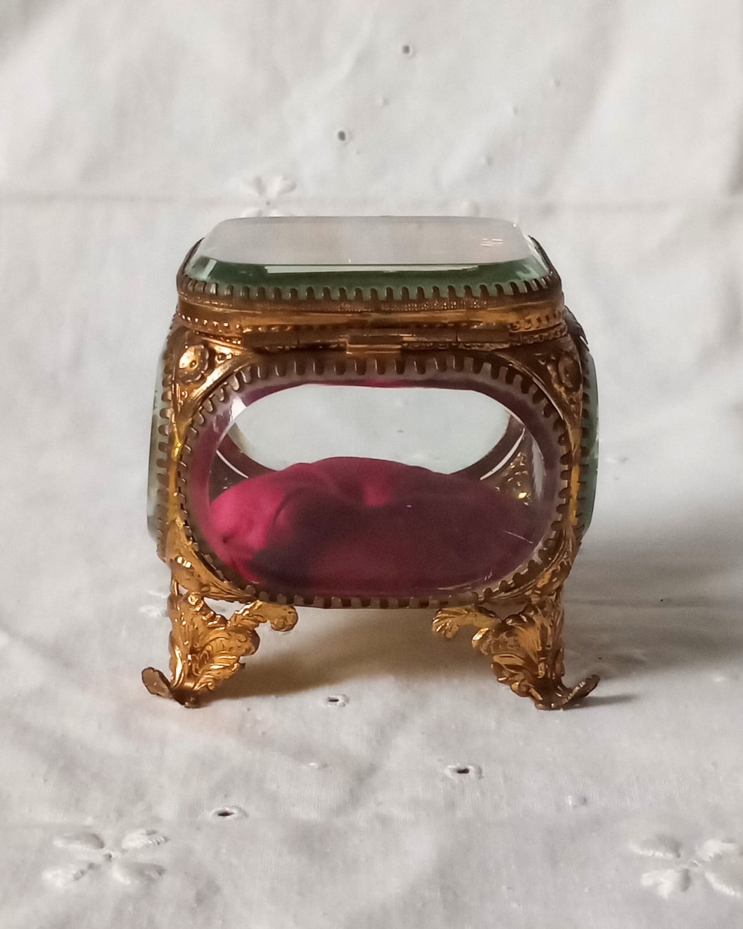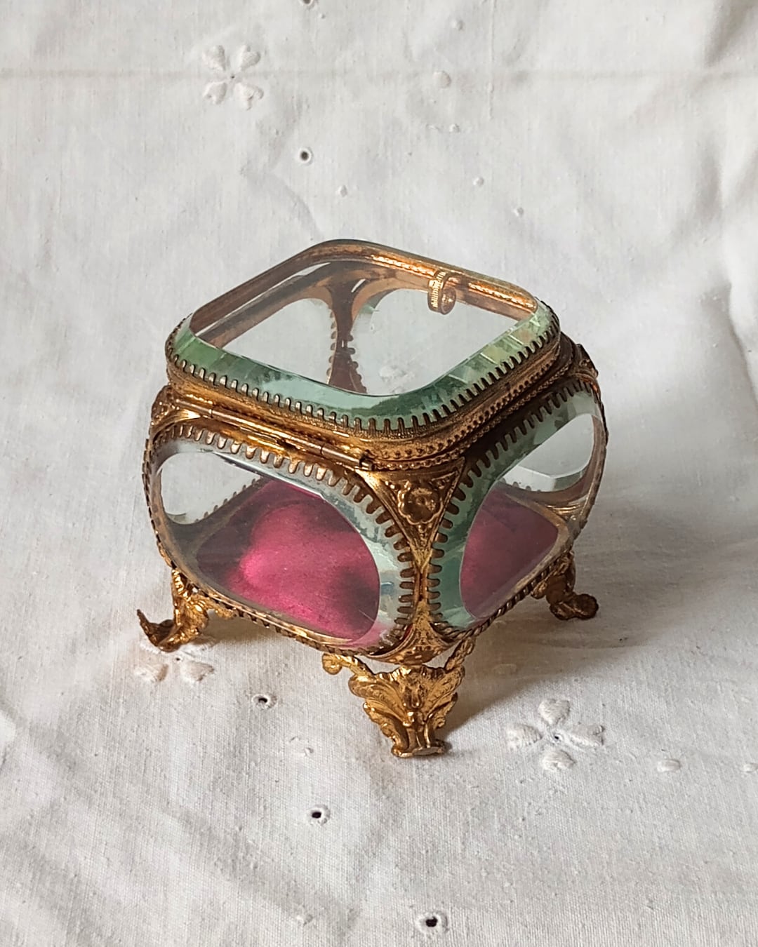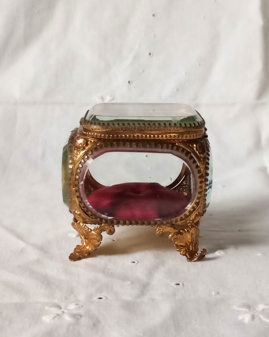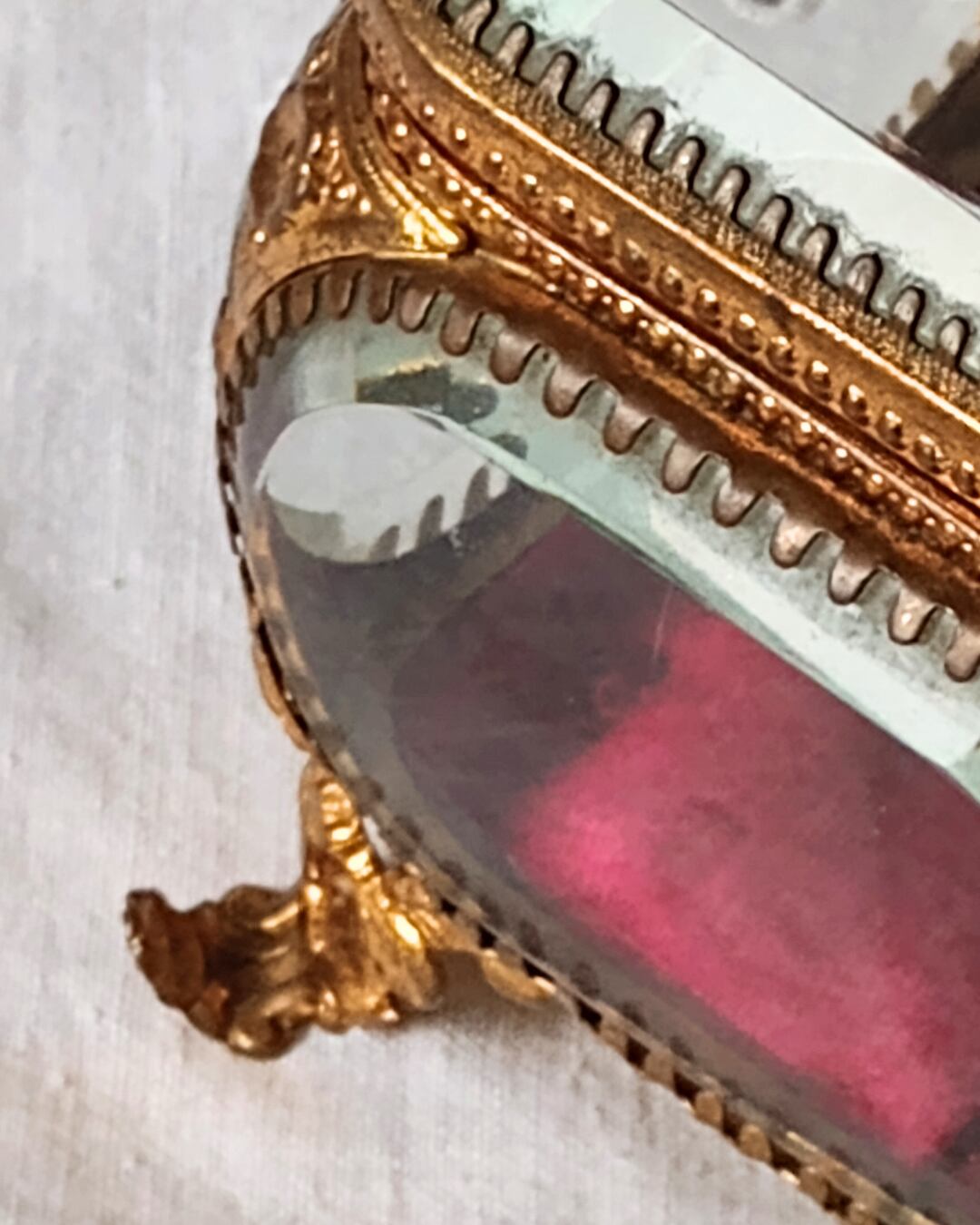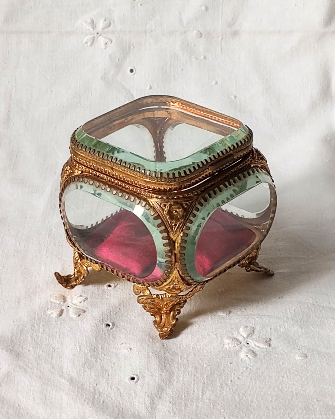 フランスより届きました、フランスアンティークのガラスのジュエリーボックスです。