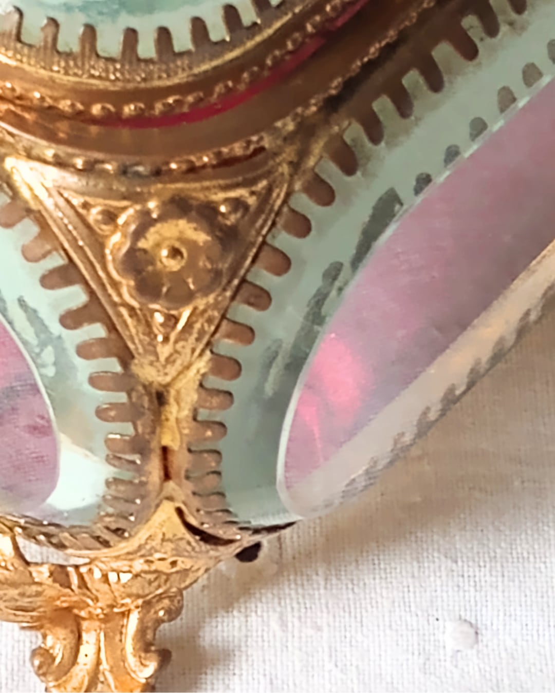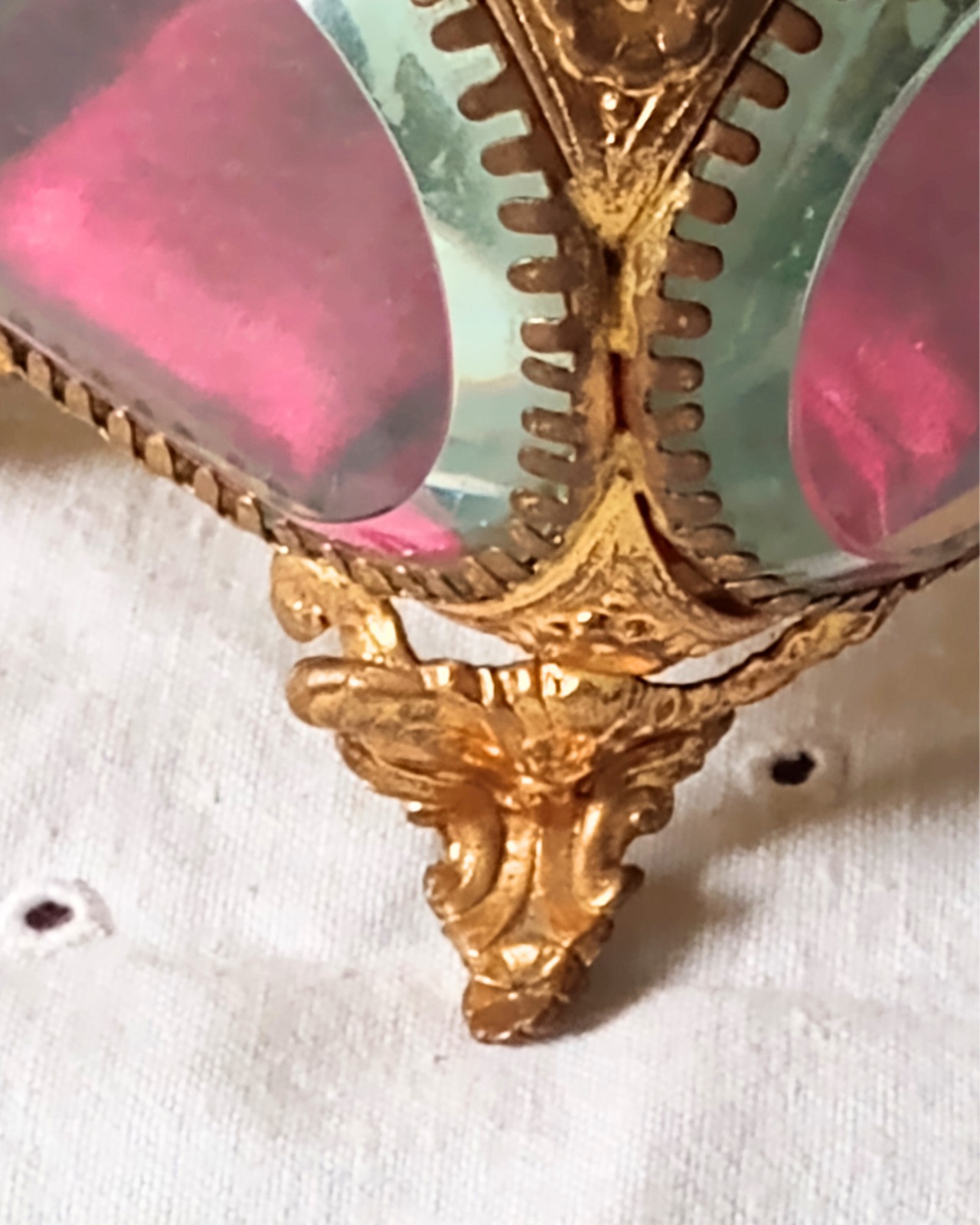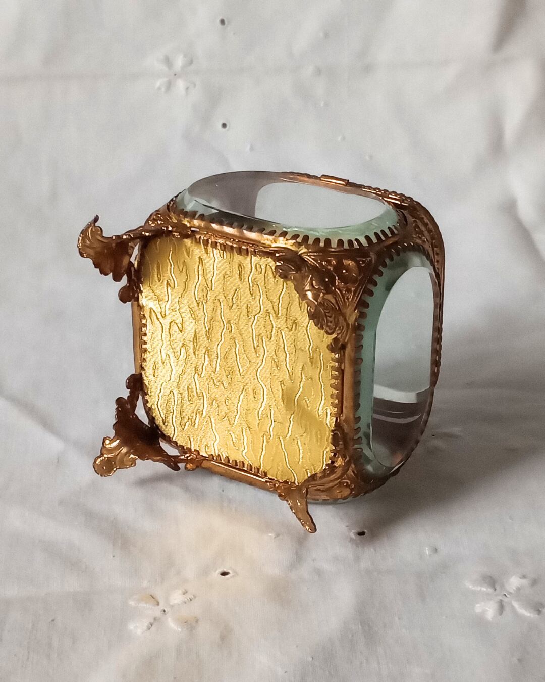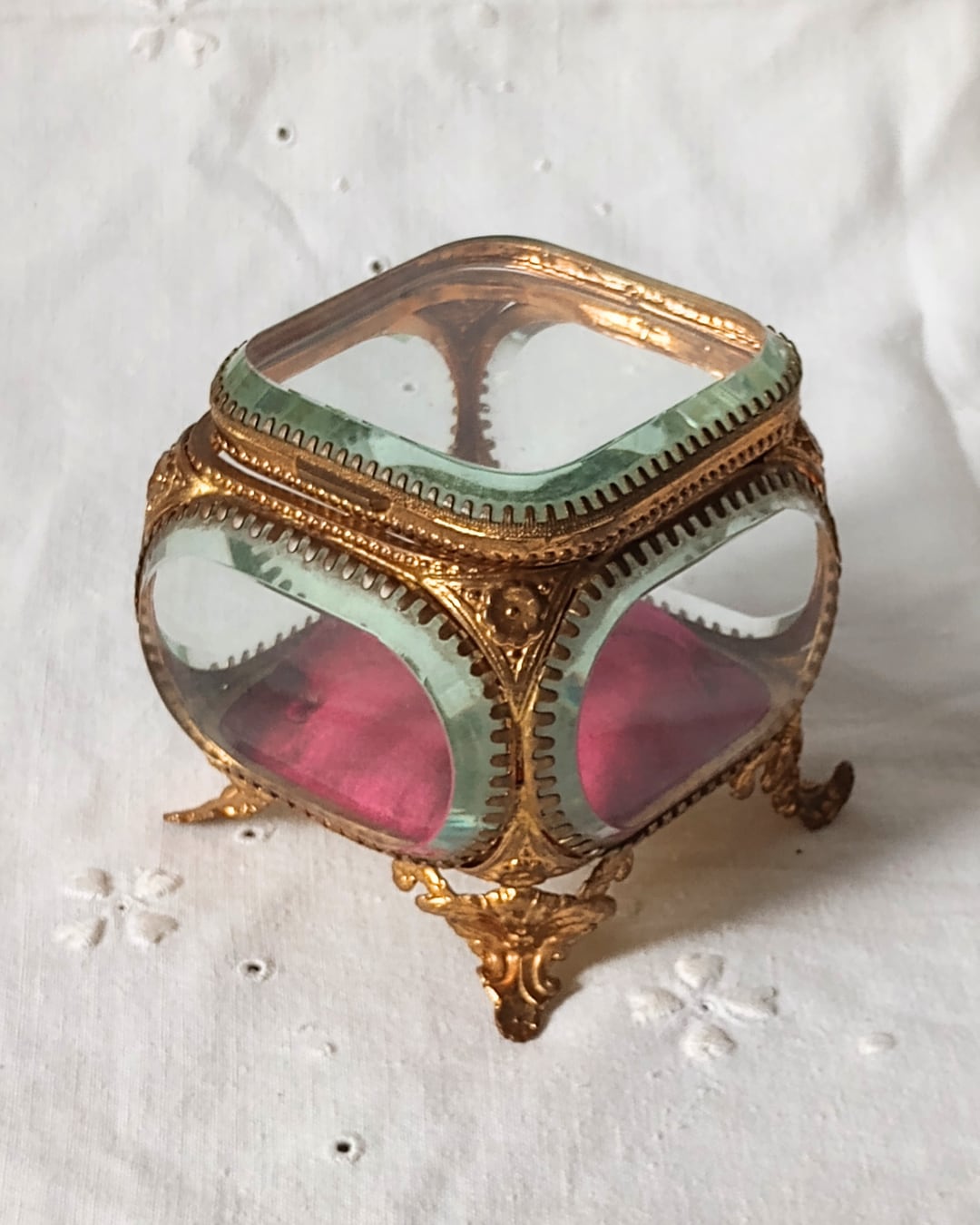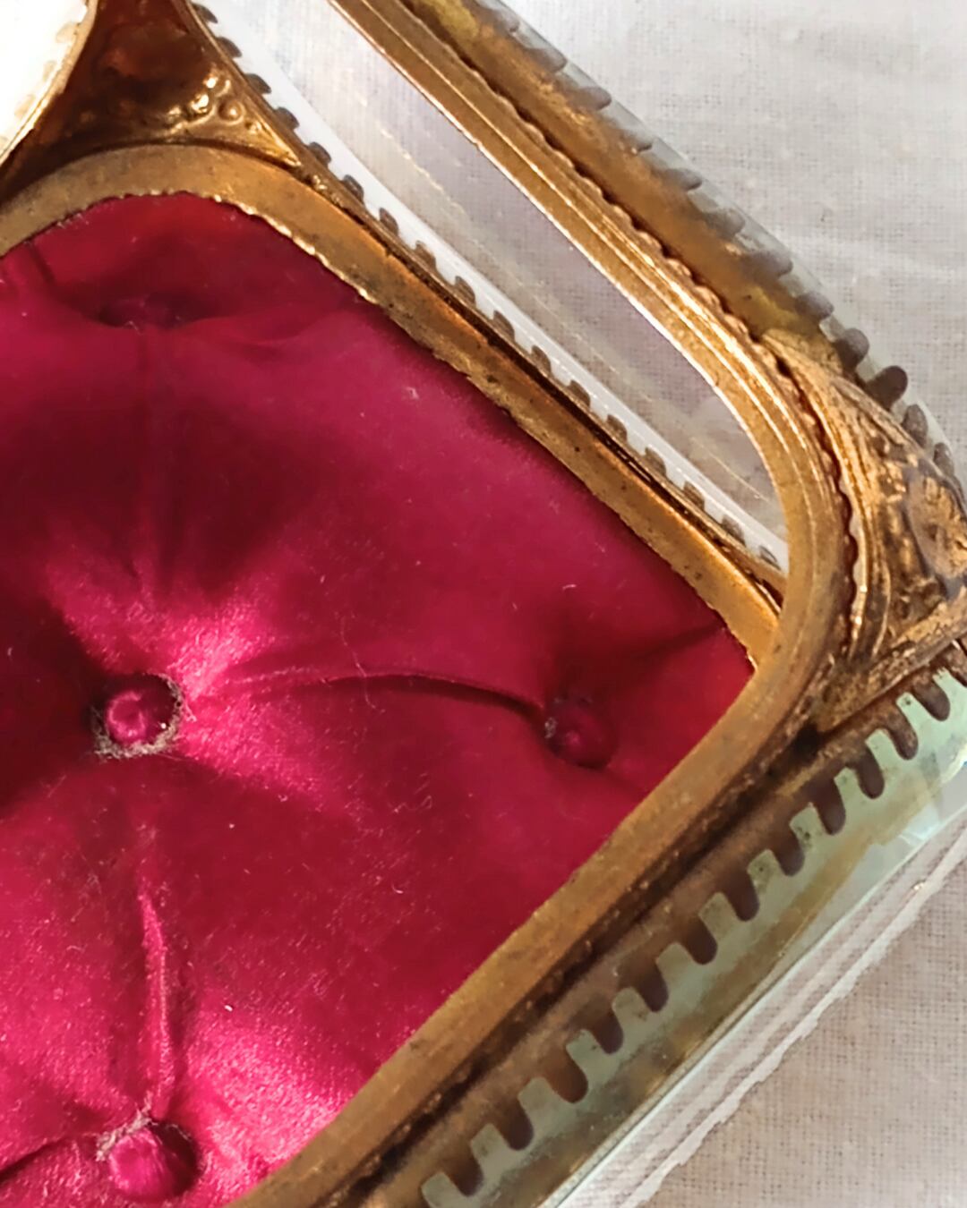 フランスより届きました、フランスアンティークのガラスのジュエリーボックスです。