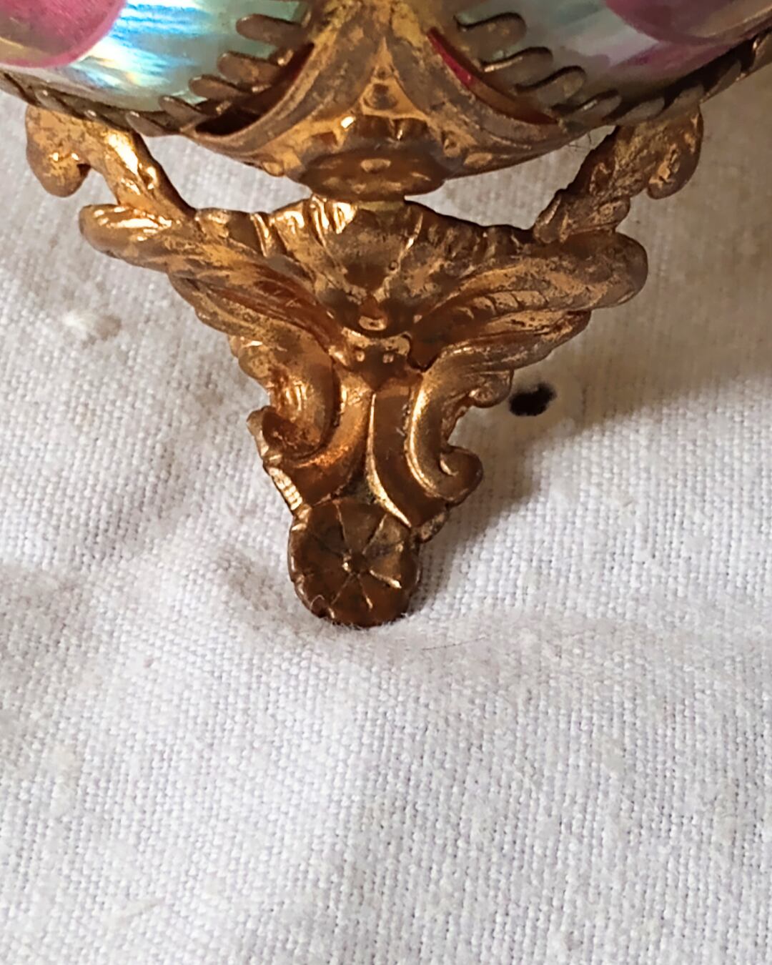 枠組みは真鍮の様な金具でできており装飾された脚がついております。