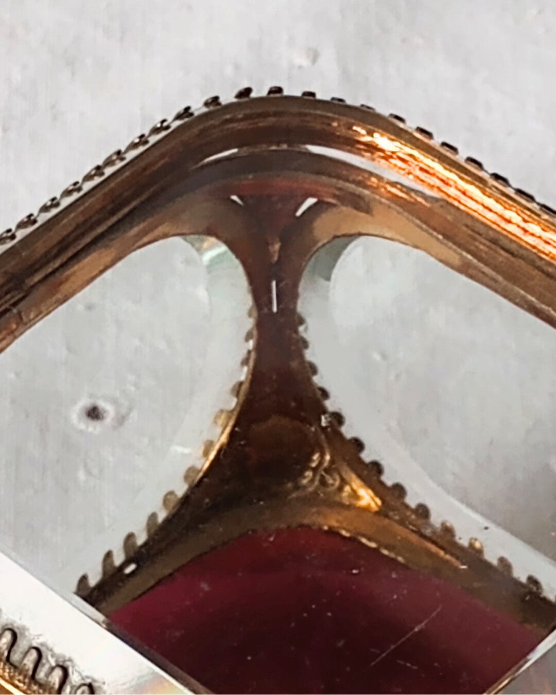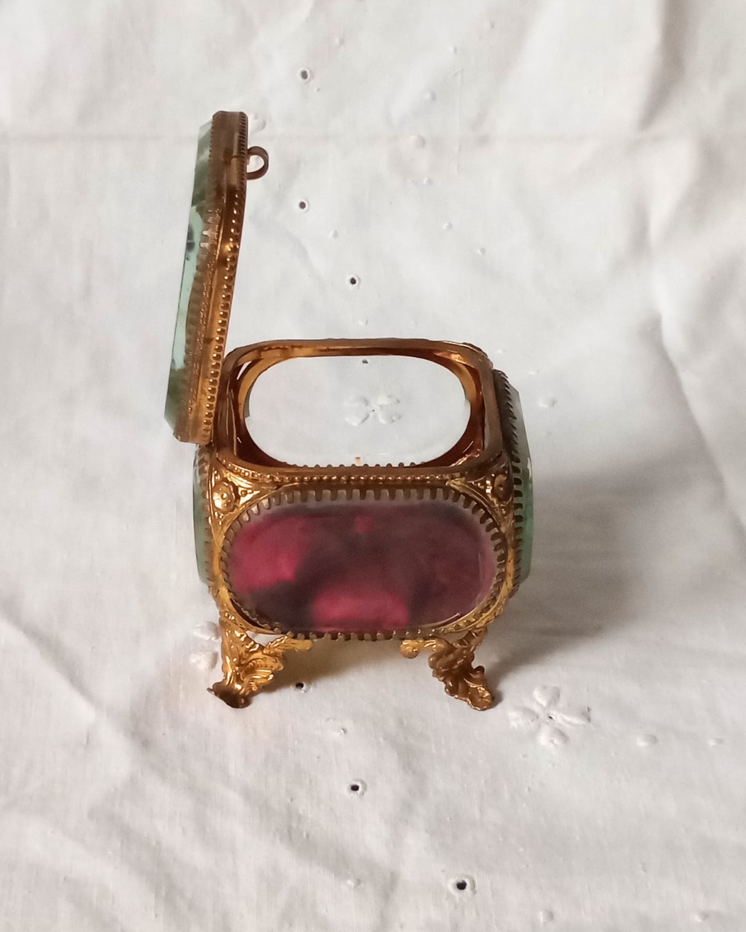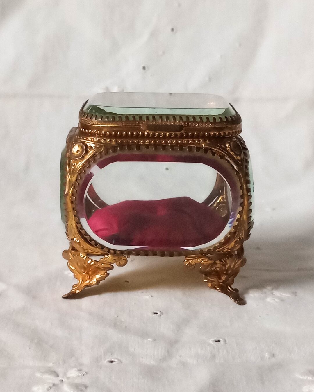 フランスアンティーク ガラスのジュエリーボックス 1900年代初期 赤 ワインレッド