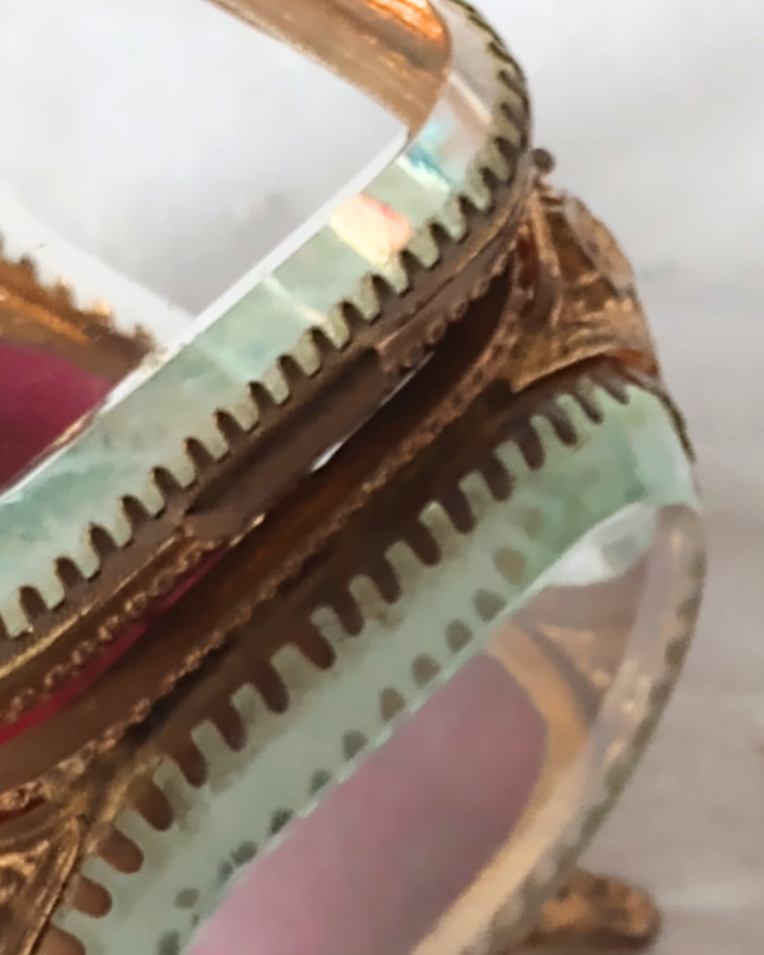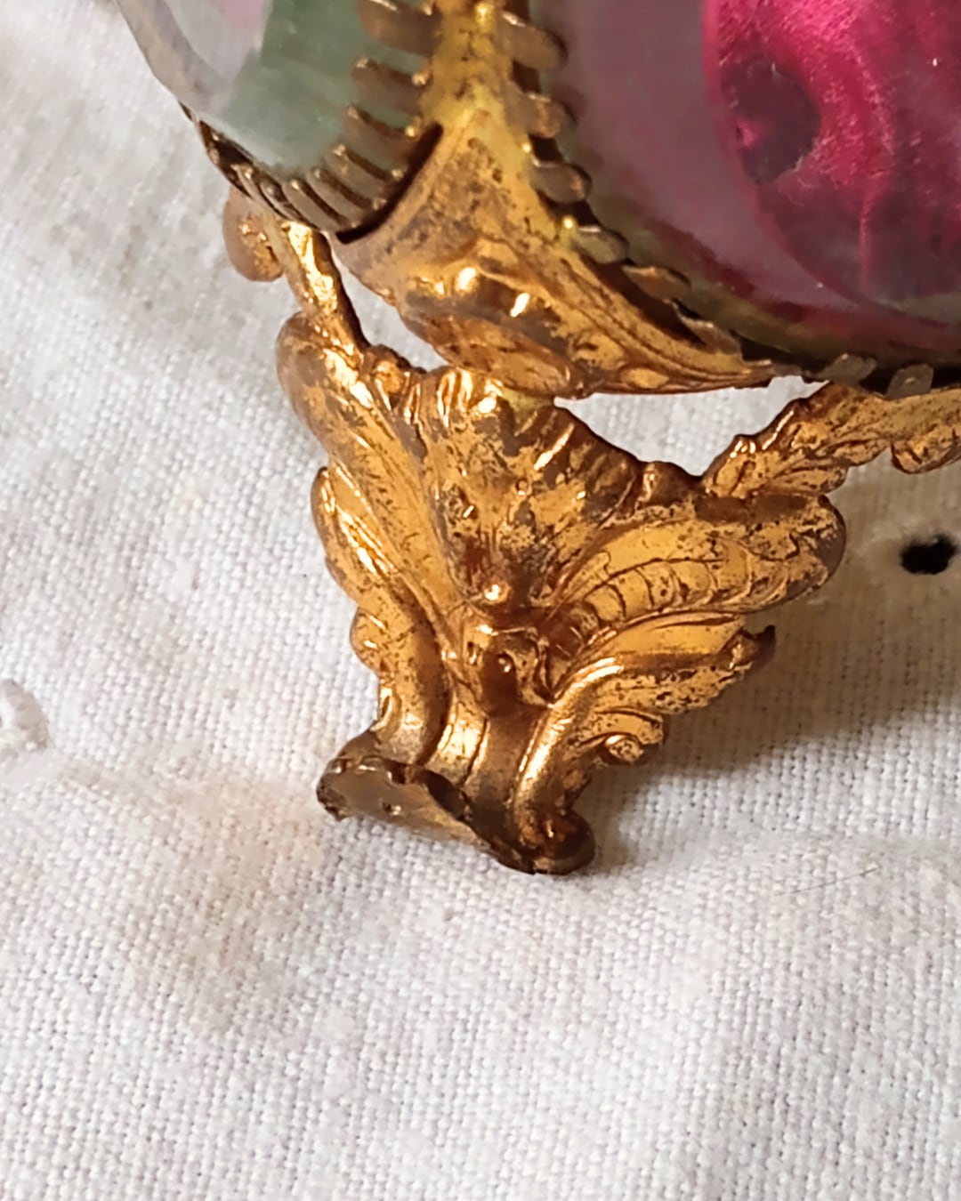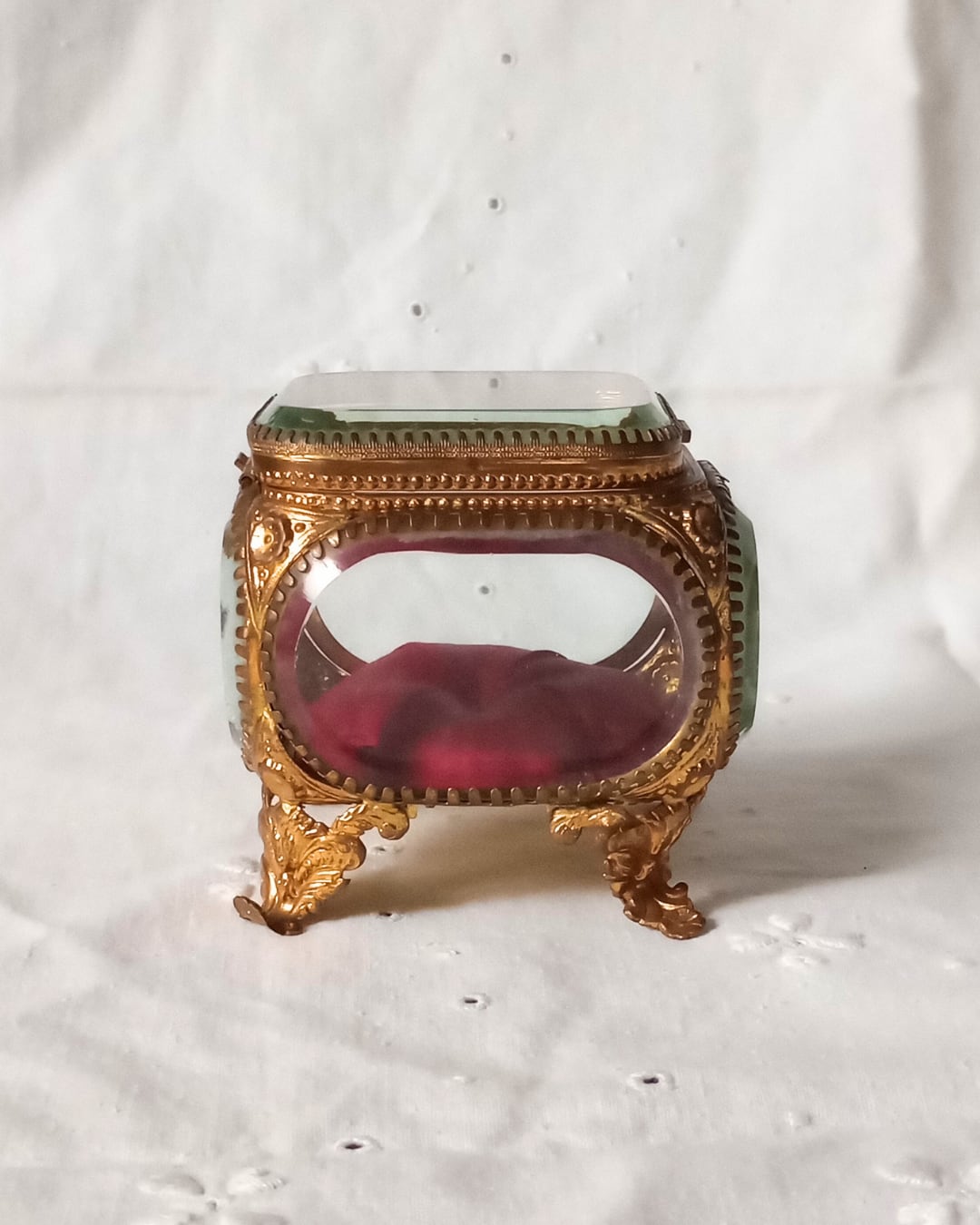 フランスアンティーク ガラスのジュエリーボックス 1900年代初期 赤 ワインレッド