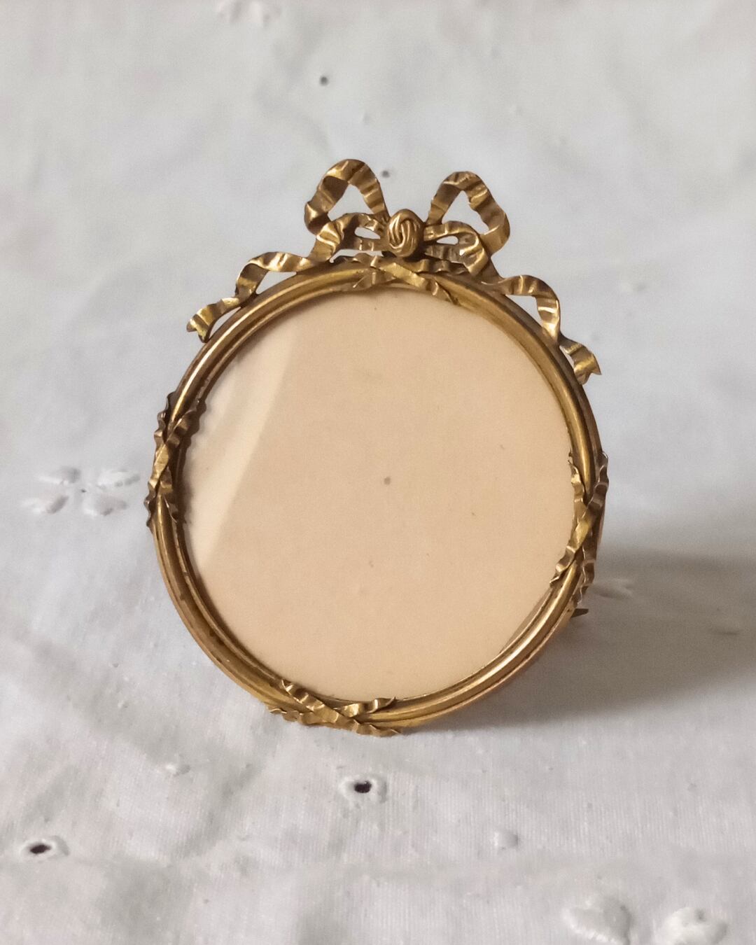 オルモル装飾 リボンフレーム フォトフレーム 丸 真鍮 フランスアンティーク