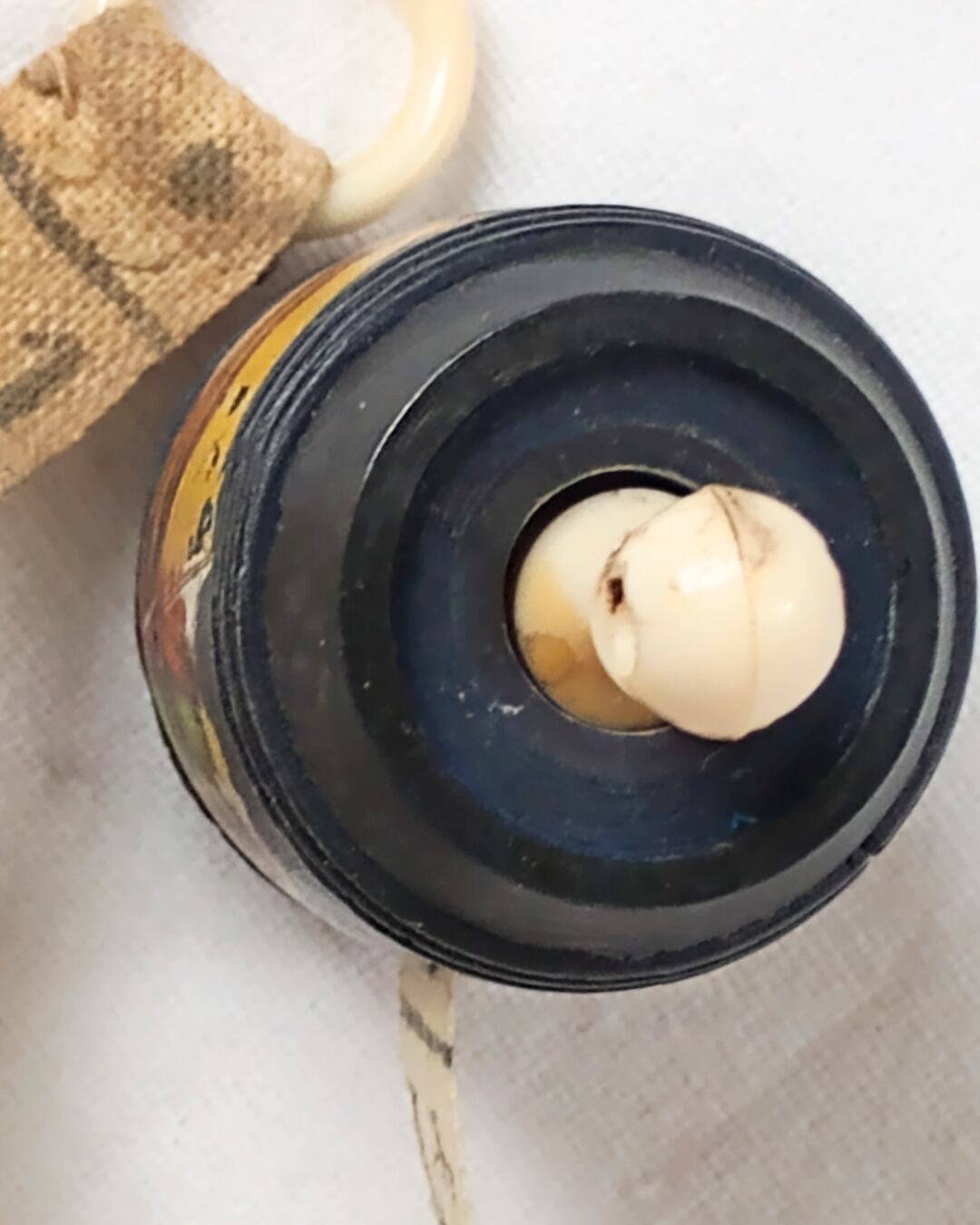 アンティーク 木製メジャー お針子 小間物 バレル 巻尺 黒 ブラック ヨット