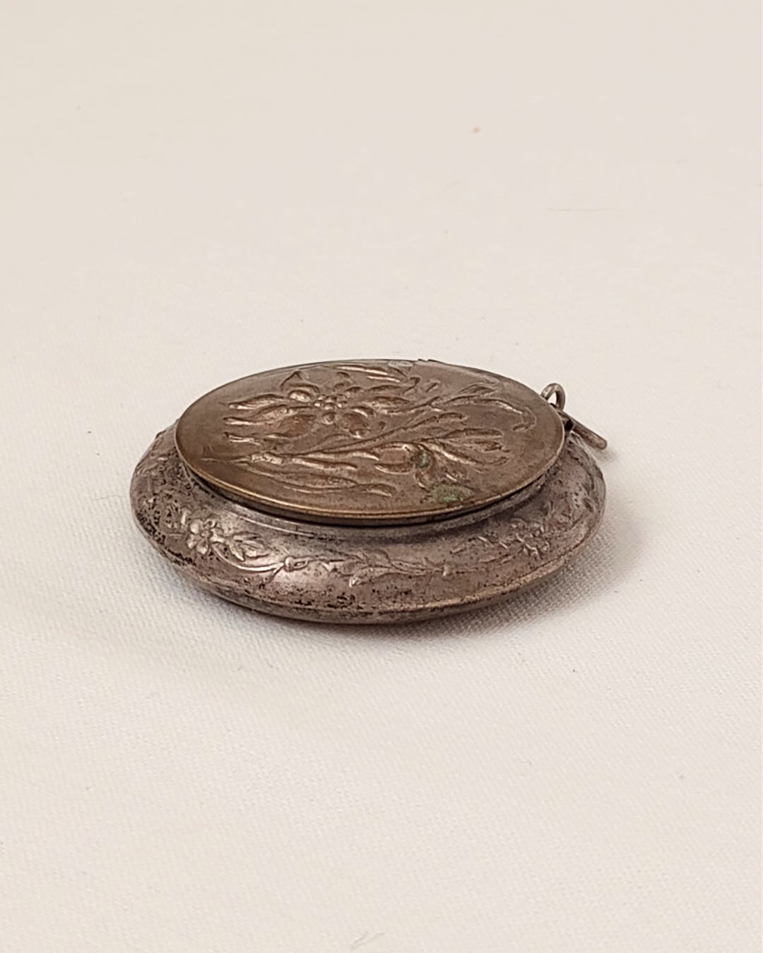 ミニパウダーケース シルバープレート フランスアンティーク エーデルワイス パフ付き 直径4.5㎝