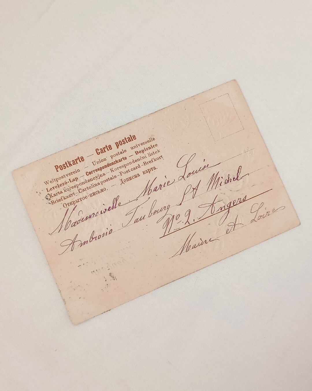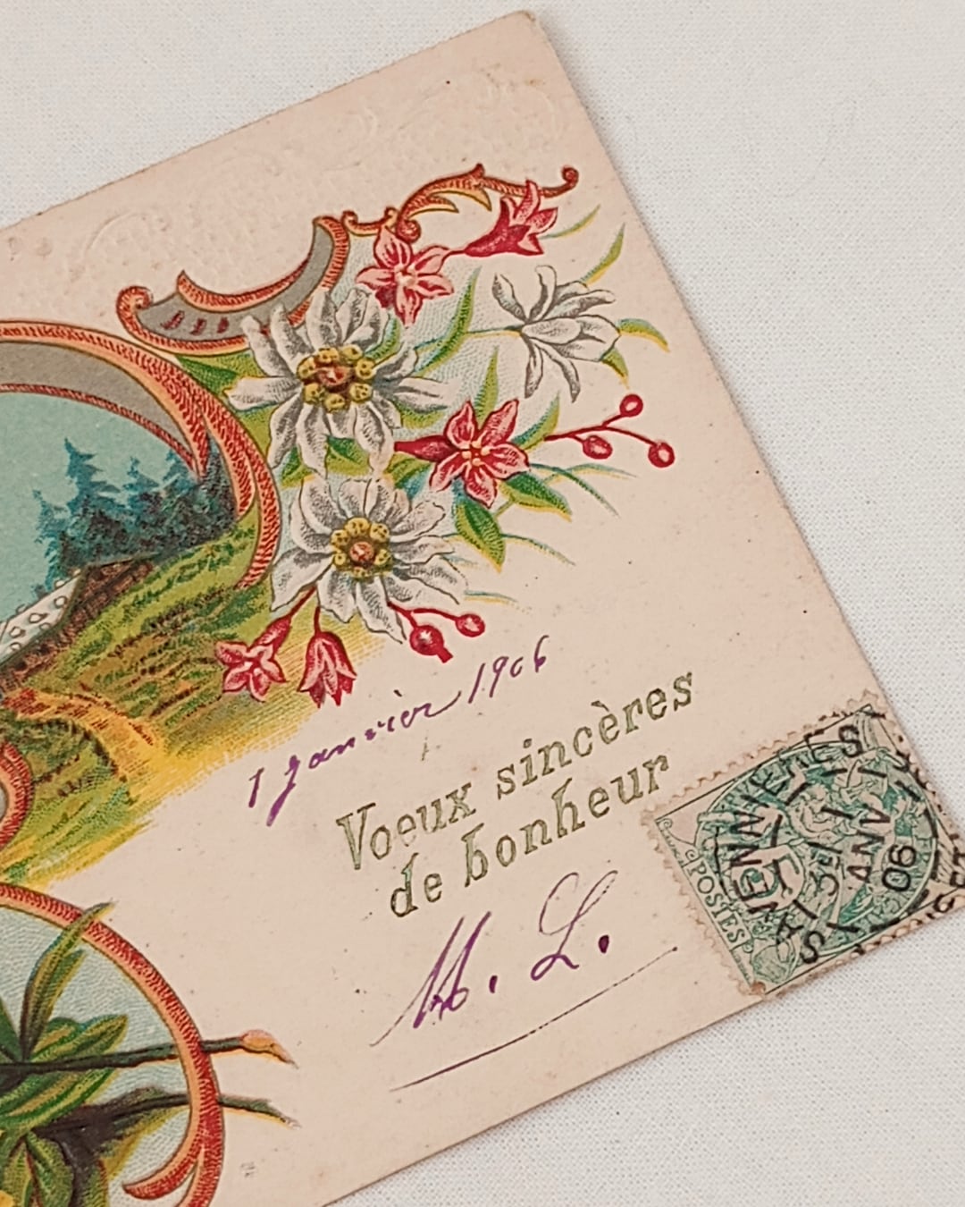 フランスより届きました、アンティークのポストカード1906年のものです。