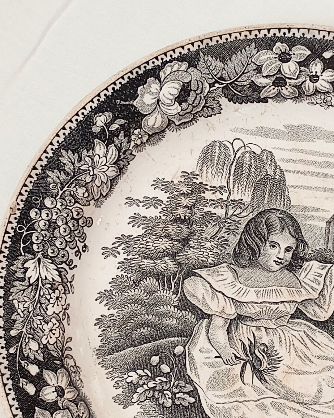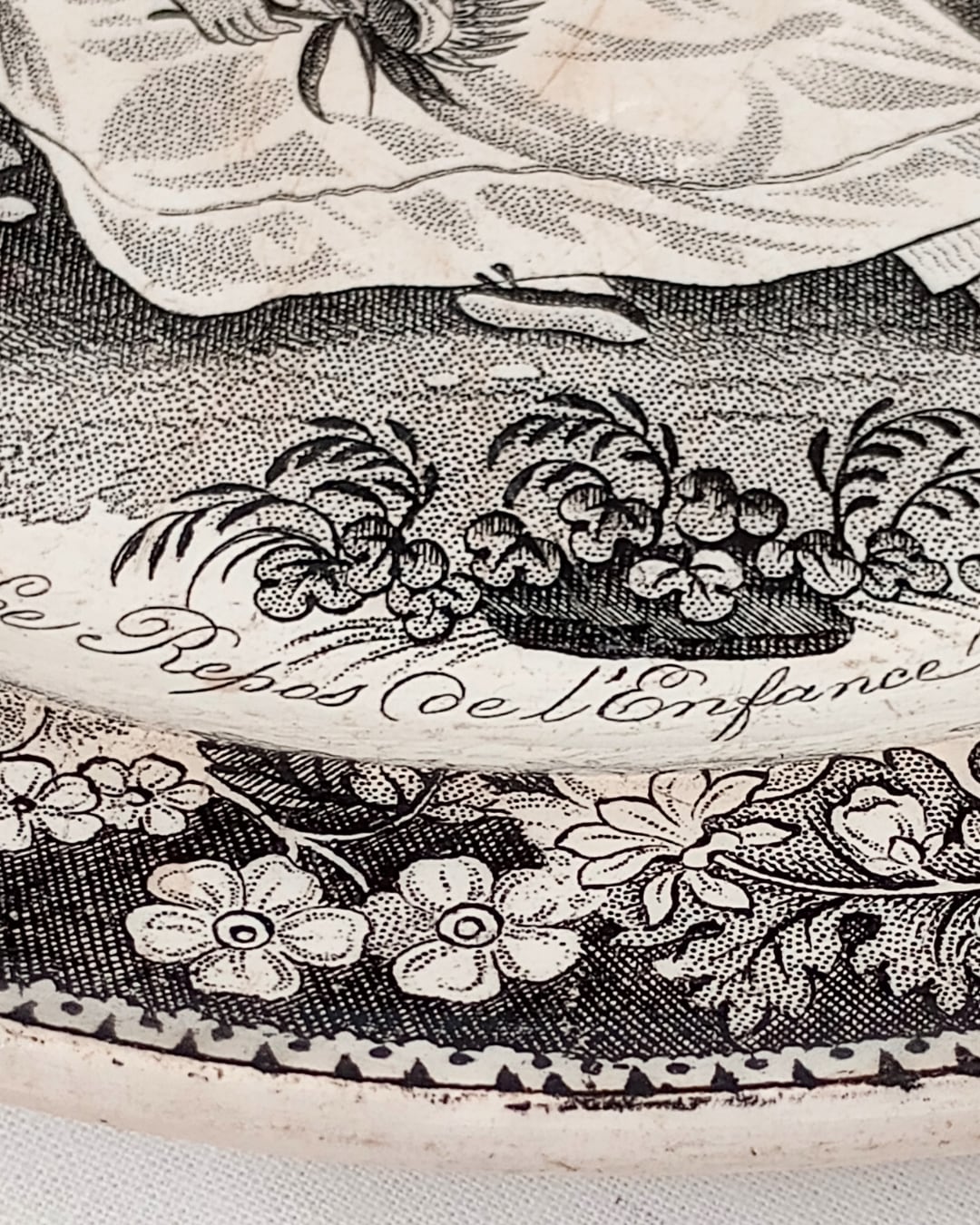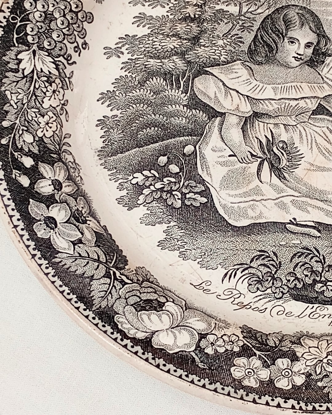 グリザイユ フランスアンティークプレート モントロー窯 Le Repos de l’Enfance ~1840年