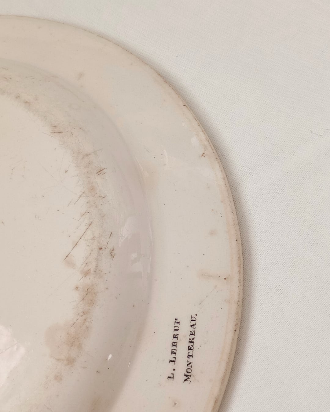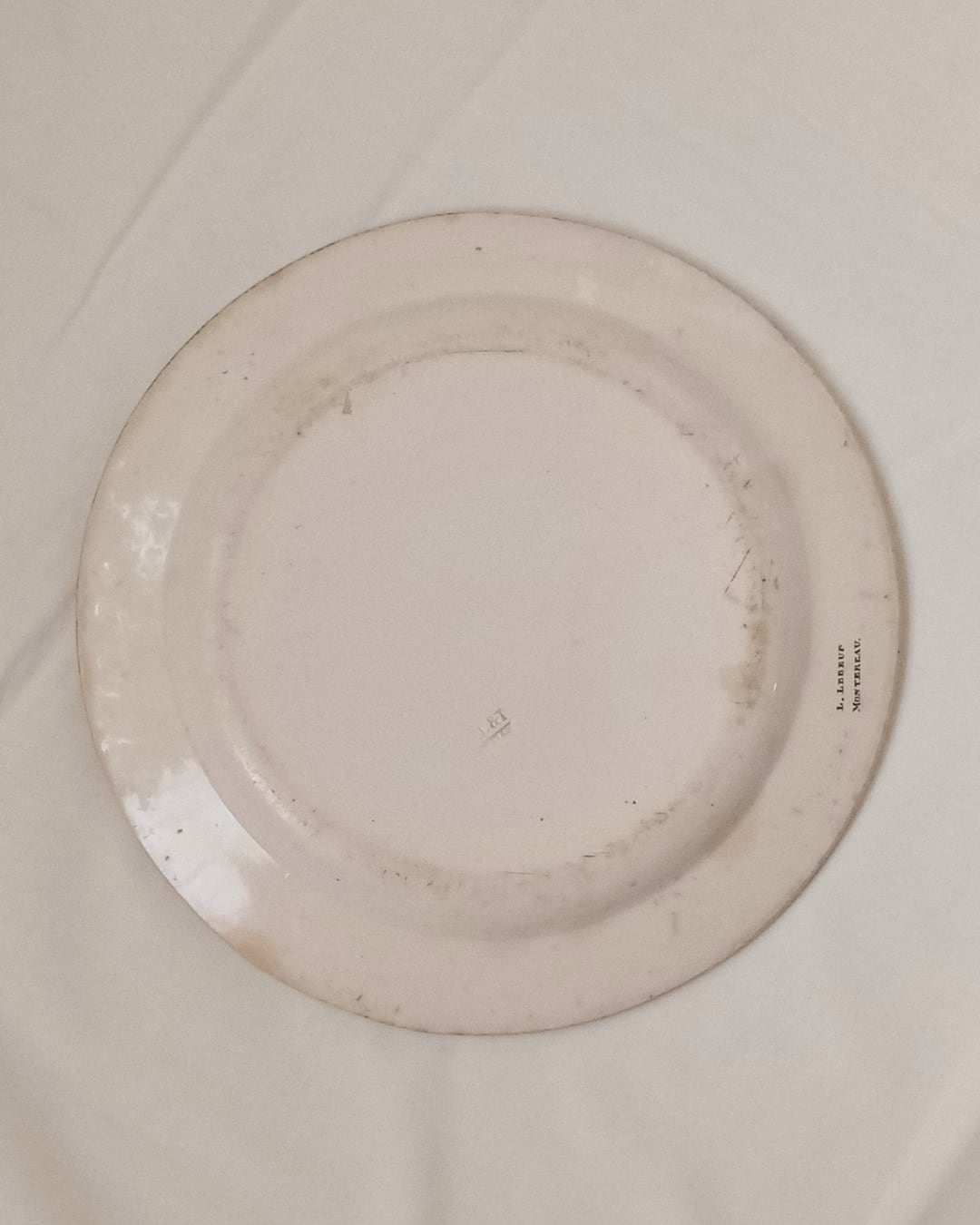 お皿のまわりに描かれているお花やベリー植物もとても繊細で美しく、プレートの裏面にはL.Lebeuf MONTEREAUのサインがあります。