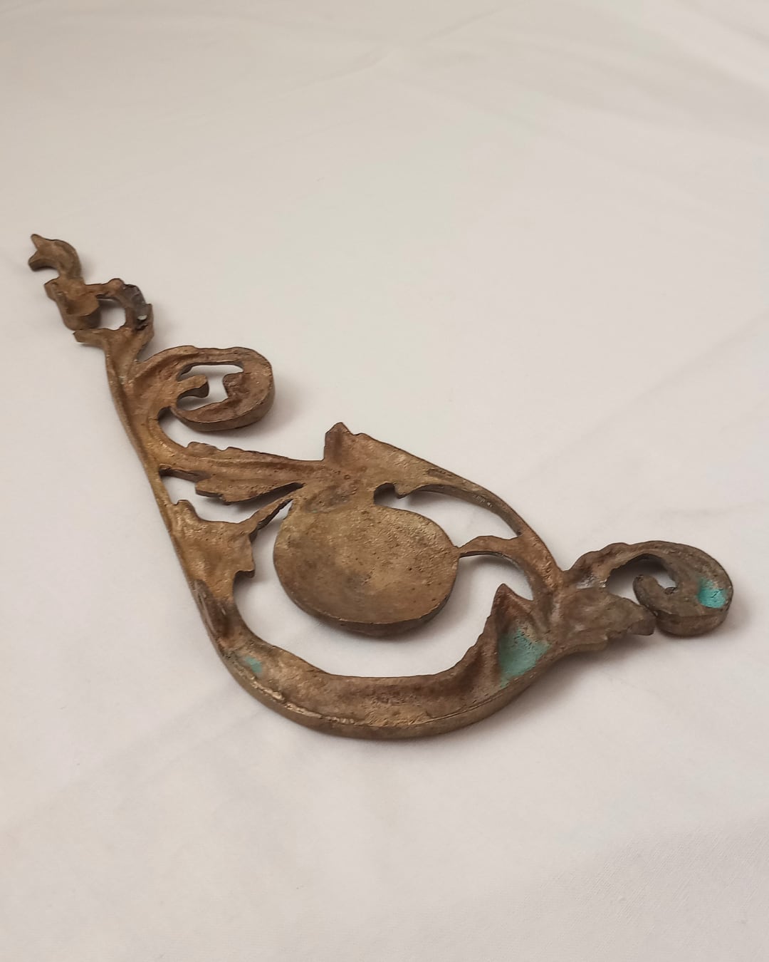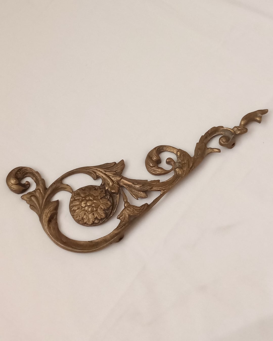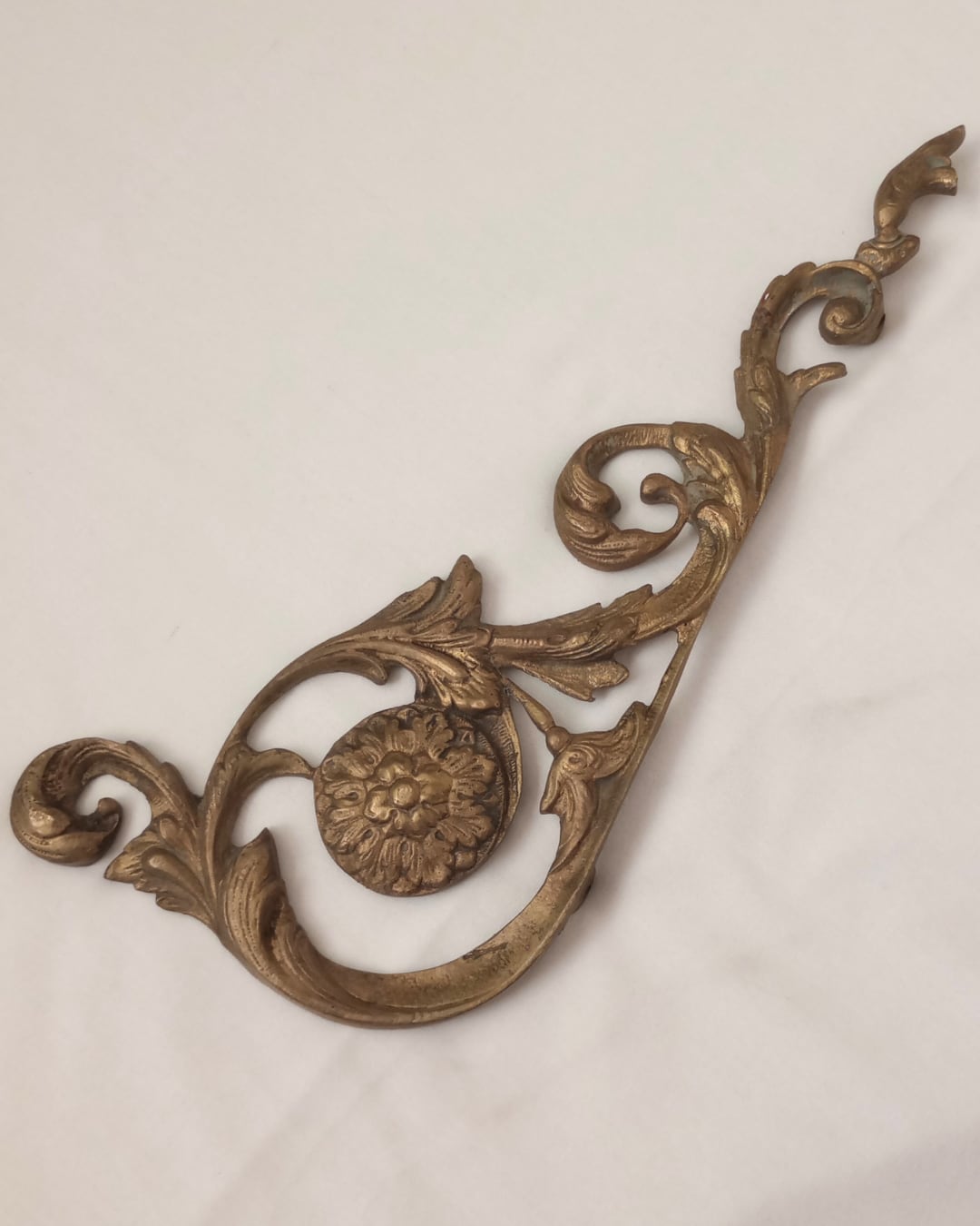 フランスより届きました、家具などにつける装飾の古いブロンズパーツです。一番長い面の長さが30㎝ありとても存在感があります。なめらかな曲線のロカイユデザインが優雅に演出し、立てて飾っても横に飾ってもとても雰囲気のある素敵なお品物です。