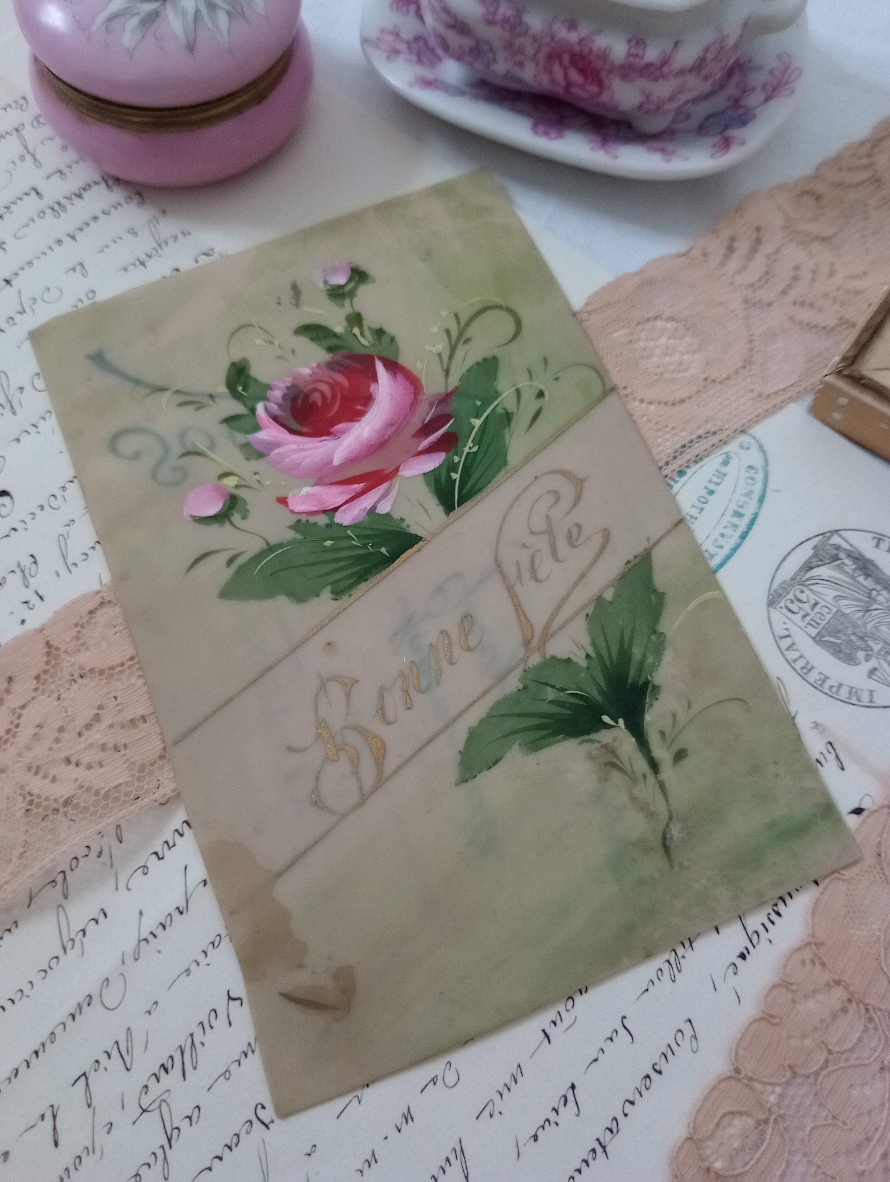 フランスの蚤の市より届きました、アンティークセルロイドカードです。