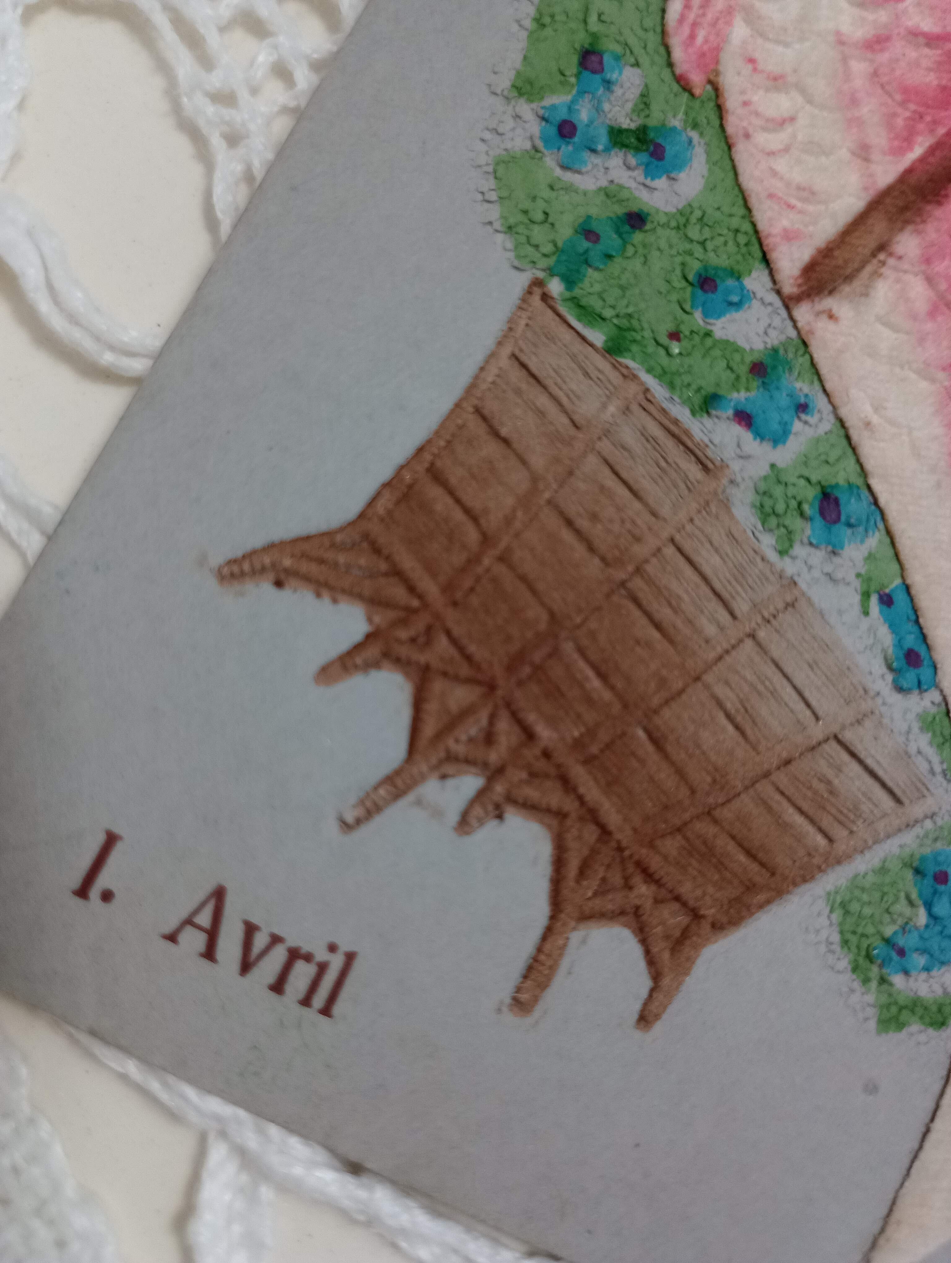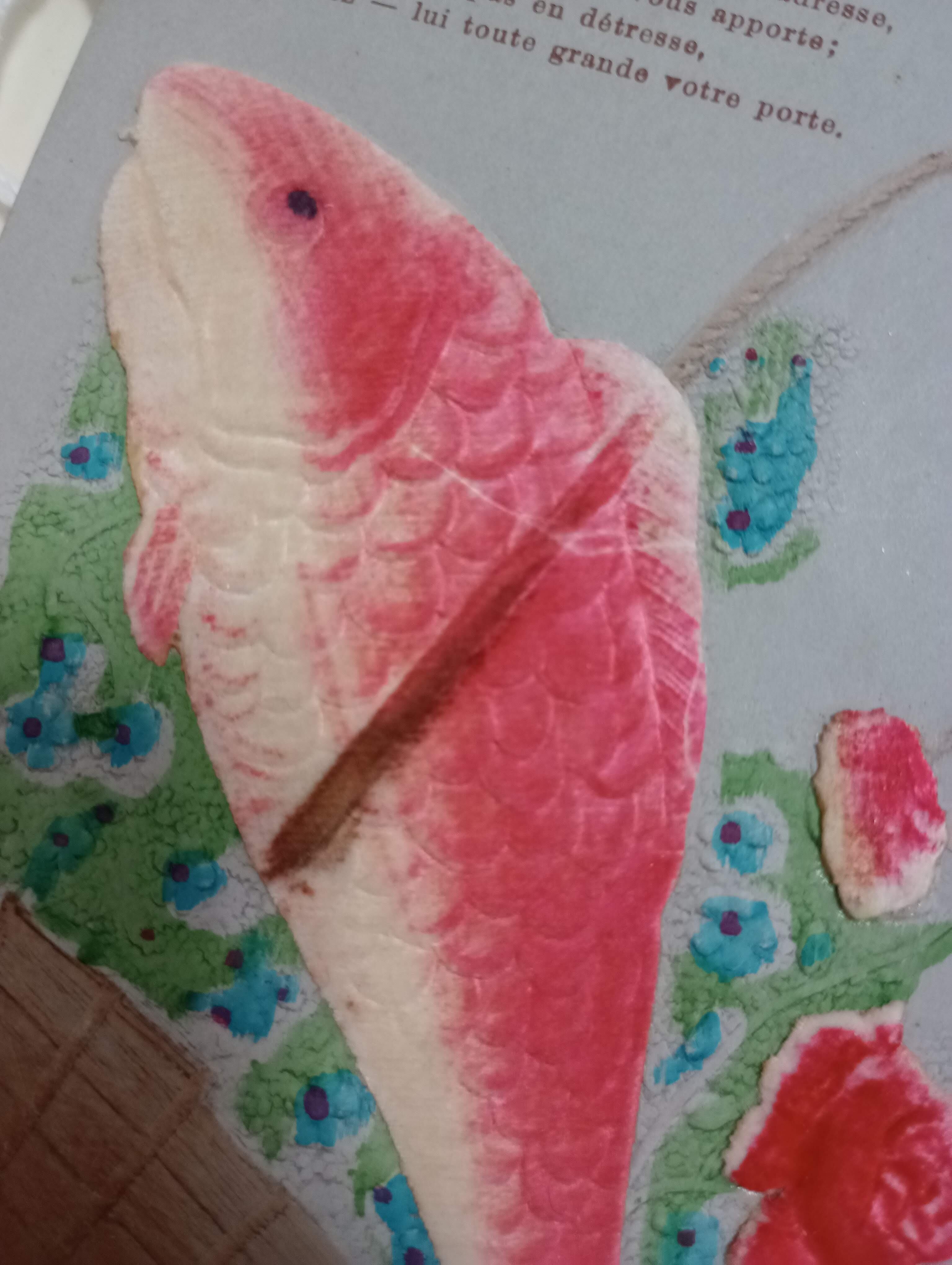 アンティークポストカード 4月の魚 バスケット ポワソンダブリル 1908年