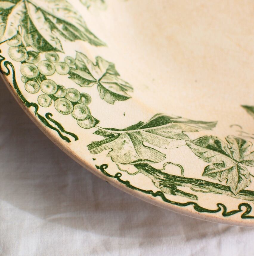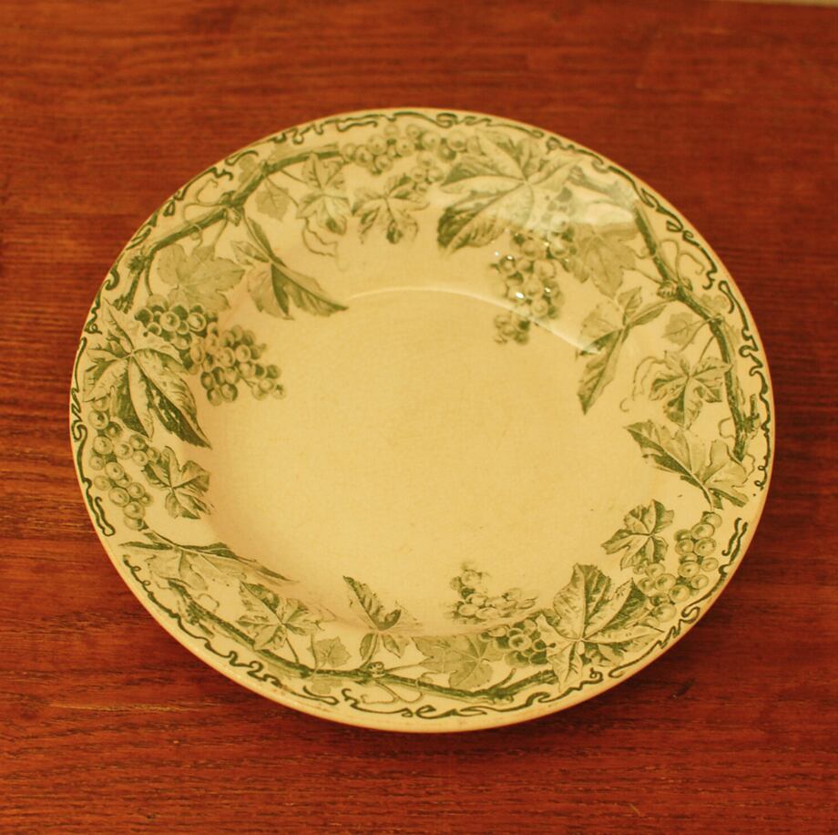 グリーンのお色味が美しい深皿のアンティークプレートです。