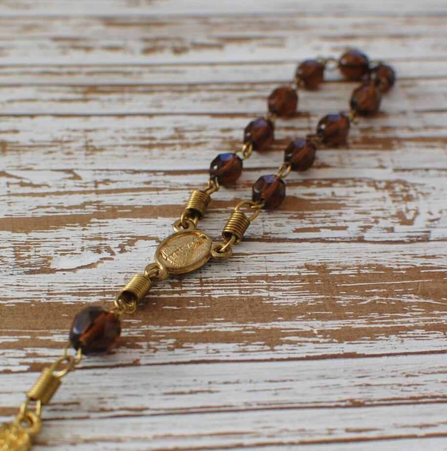 古いガラスのロザリオは1粒1粒ガラスのカットが異なるため光の当たり方が様々で、ぬくもりが感じられ本当に美しく現代のもののように規則正しいビーズでないところがとても素敵です。