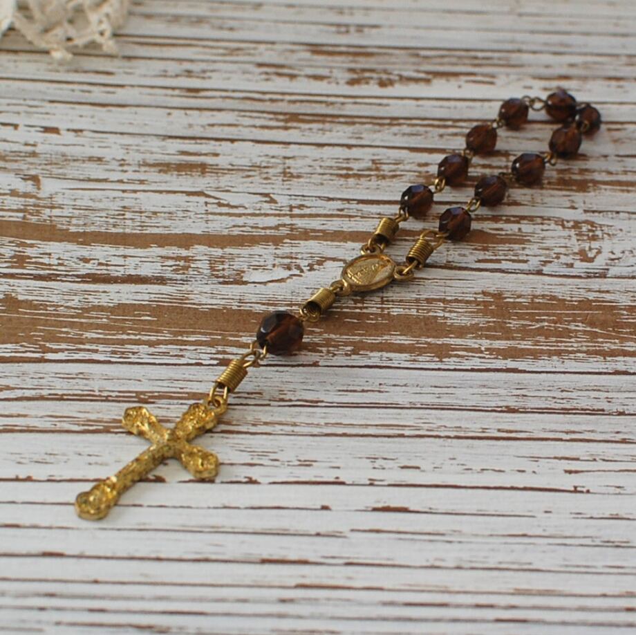 ロザリオ クリア ブラウン ガラスビーズ