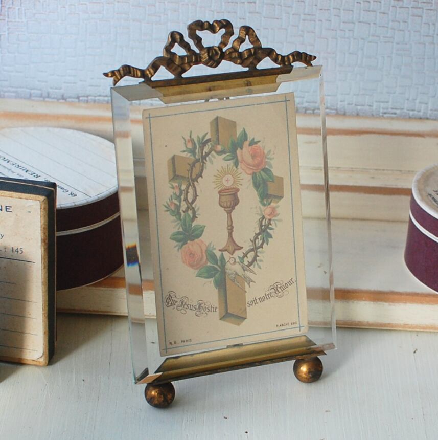 アンティークガラスのフォトフレーム リボン 1900年代初期