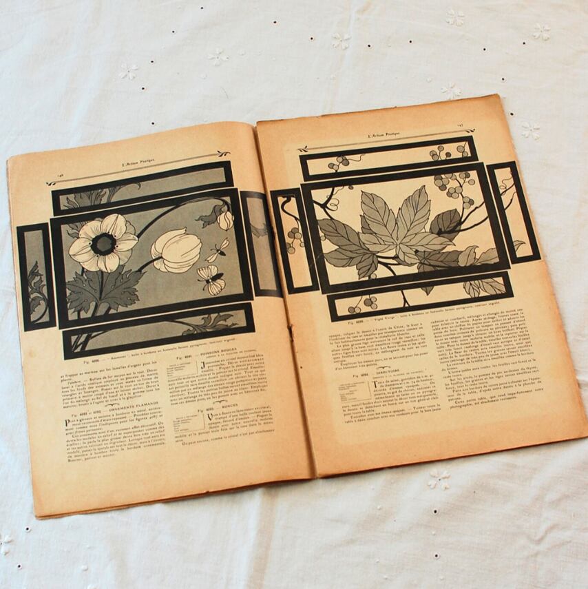 100年以上前の古いフランスの素敵な紙モノです。1921年のL'ARTISAN PRATIQUE、職人向けのアールデコ雑誌です。良い感じに色が焼けた紙がとても素敵です。画像が全てのページです。中にカラーのページもございます。