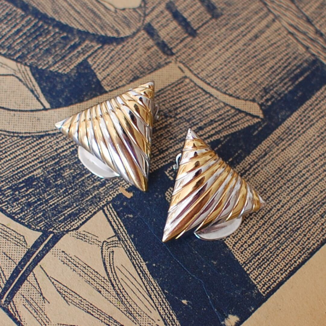 ヴィンテージイヤリング 三角 トライアングル シルバー&ゴールド フランス