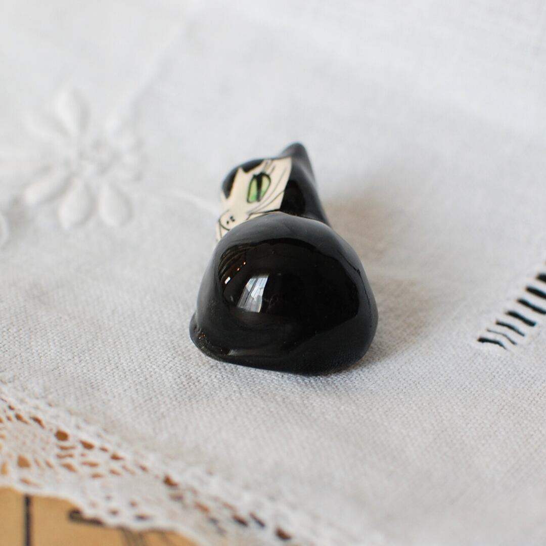 イギリスヴィンテージ、フィリップローレストン社(1970〜90年代)黒猫の小さな置き物です。こちらの猫ちゃんはまるまって寝そべっているポーズです。