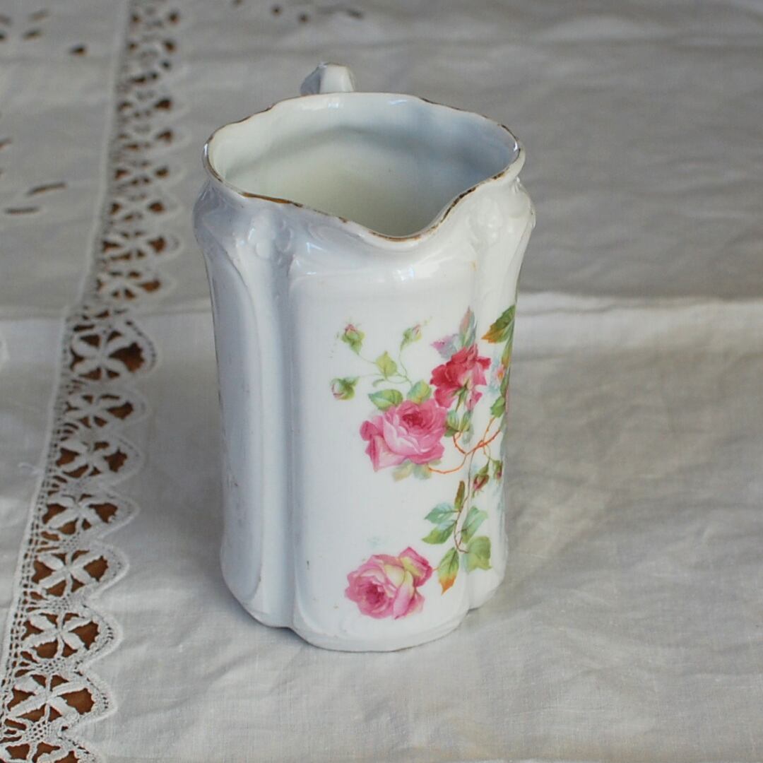 ローズ柄のピシェ H13.6cm フランスブロカント