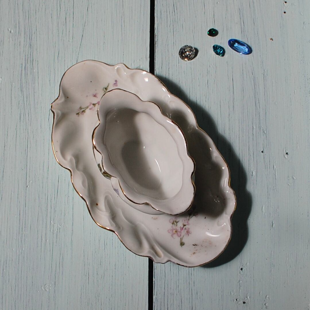 金彩の縁どりやところどころに入ったお花はほとんど消えてしまったり、かすれておりますがとても雰囲気がありそれだけ年代を感じます。