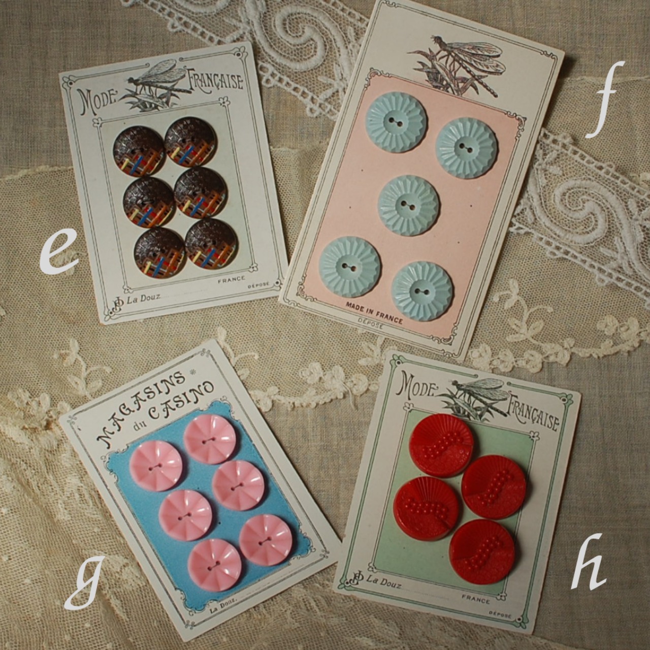 フランスヴィンテージ ボタンシート 台紙付き 4種 e~h