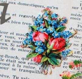 お花の古いクロモス、5枚セットで1枚1枚違います。