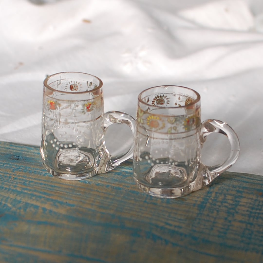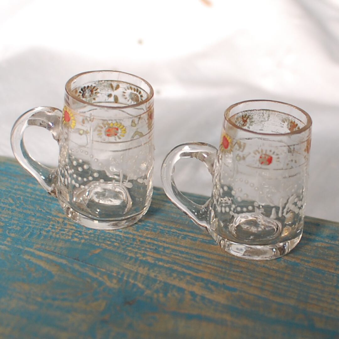 エナメル絵付け 古いミニグラス ハンドペイント A