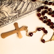 フランスより届きました、古いロザリオです。ネックレスの輪の部分が約43cmのロザリオです。(ネックレスとしての使用はできません)古いガラスビーズのためカットが1粒1粒かたちが違うのでキラキラと輝いてとても素敵です。