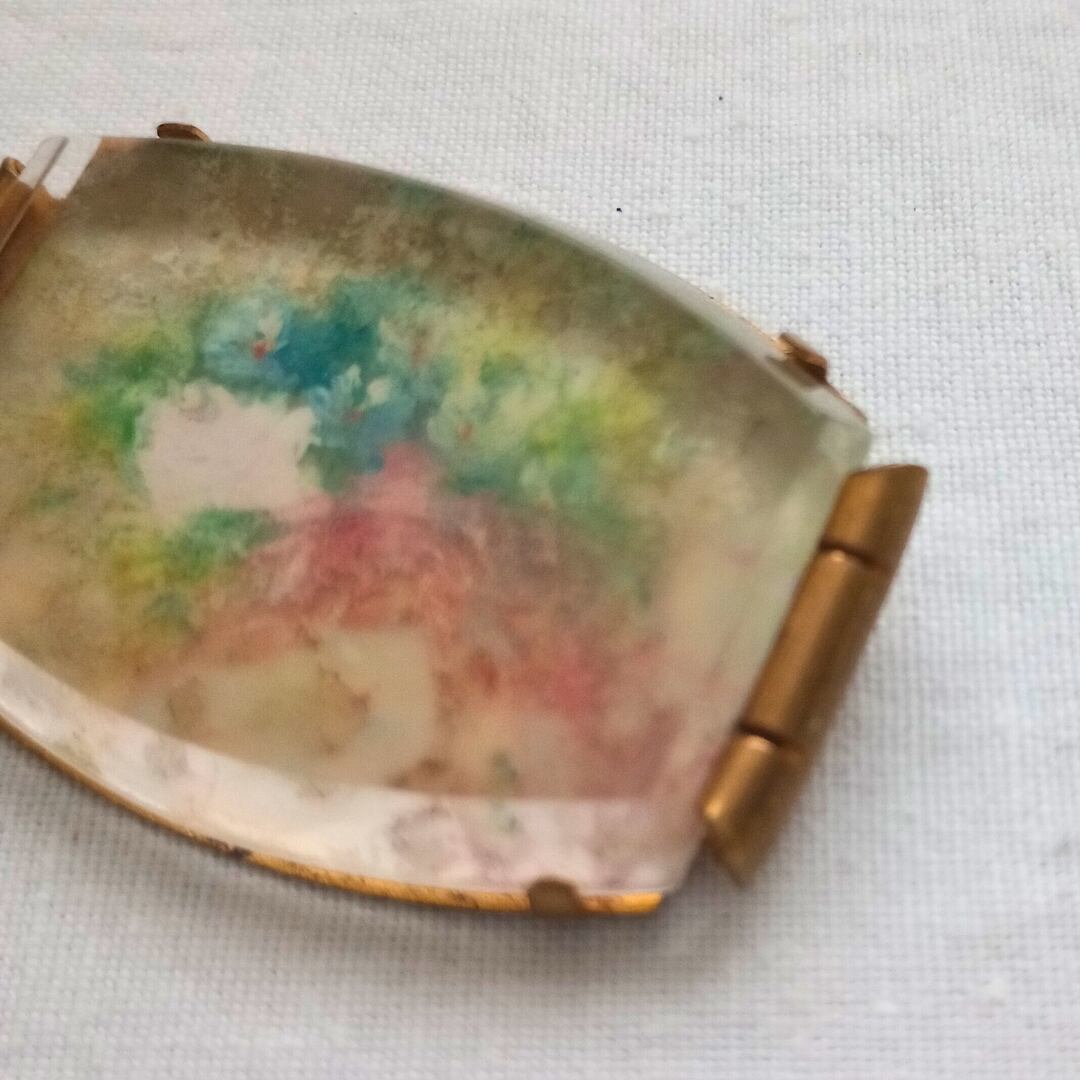 ルーサイトブローチ お花の絵 真鍮 ~1960年頃