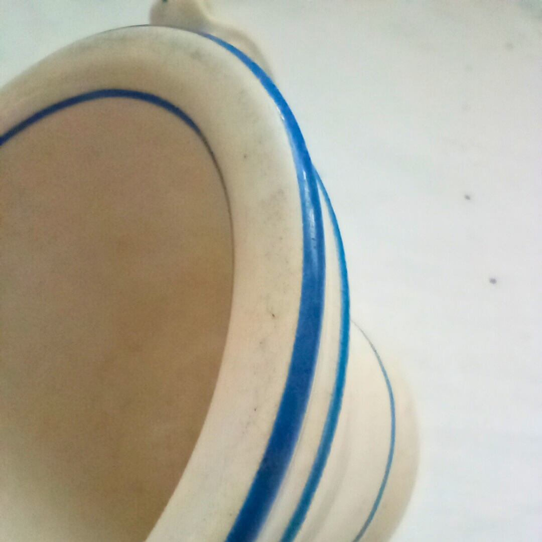 フランスのアンティークフェアでみつけました、青のラインが可愛らしい古いブリュロです。
