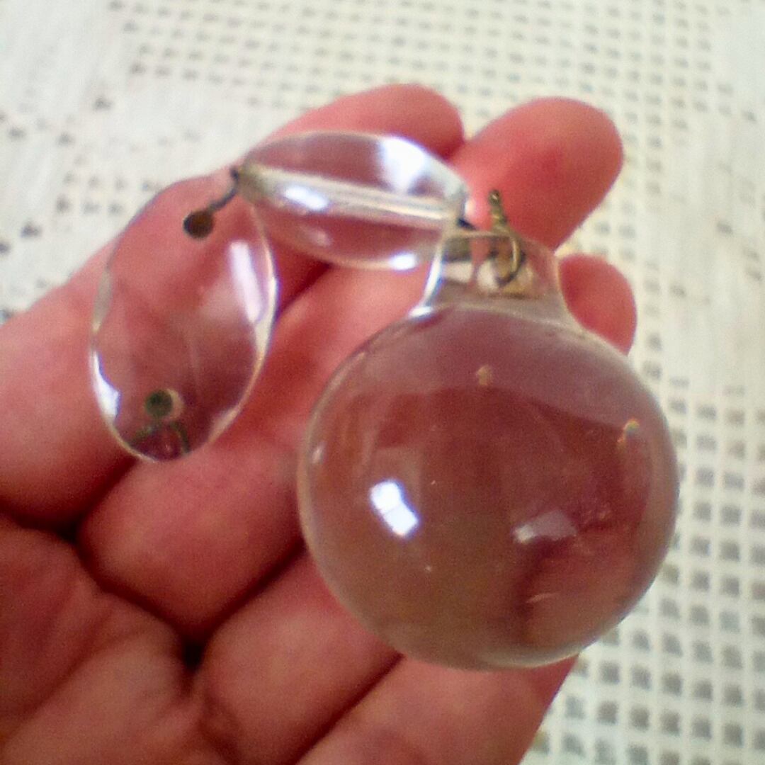 古いシャンデリアパーツ 丸 透明 クリア フランスブロカント直径3cm